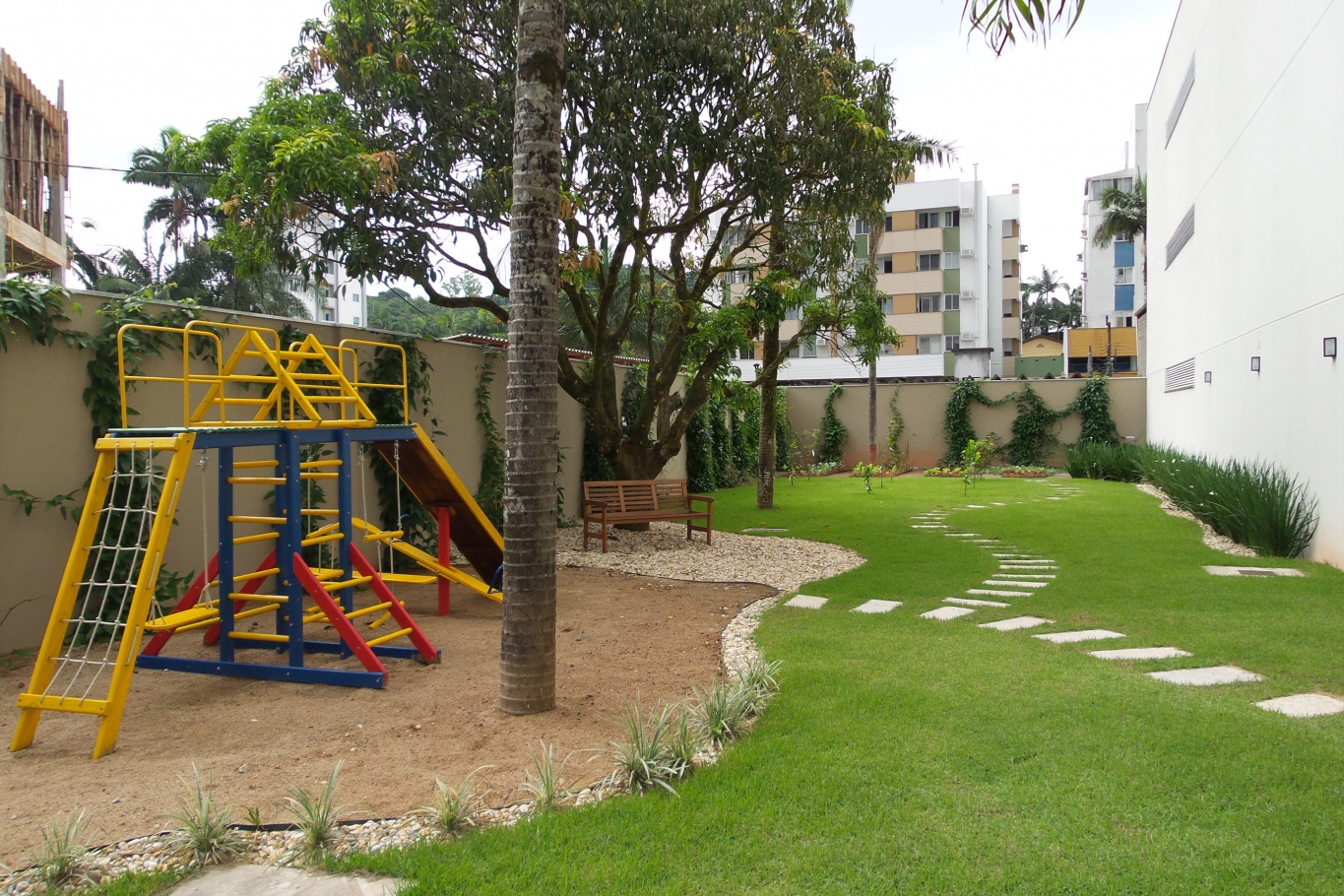Condomínio com piscina, salão de festas, play ground e área externa.